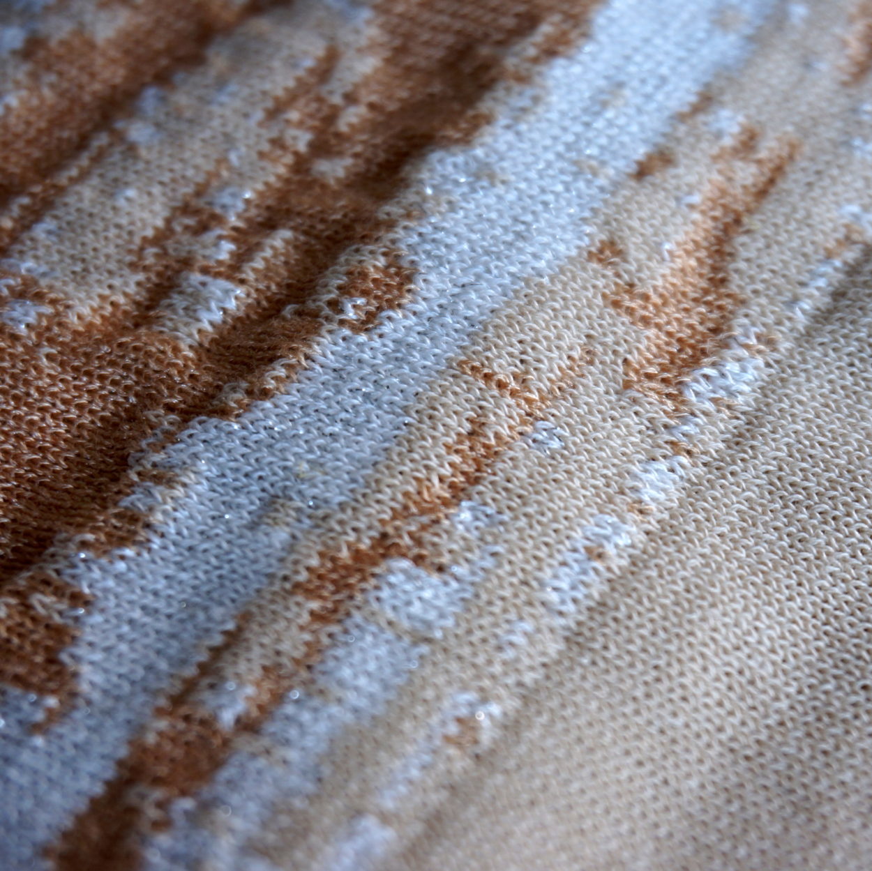 インターシャ―で編み立てた幾何柄横使いの編地です