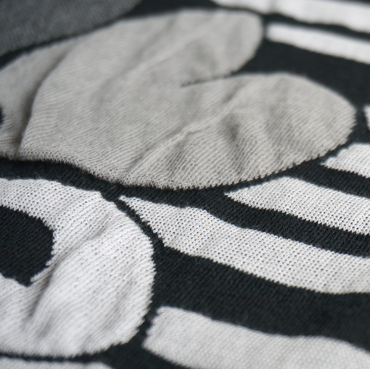 花柄の無地箇所のみ膨らむように組まれた編地です