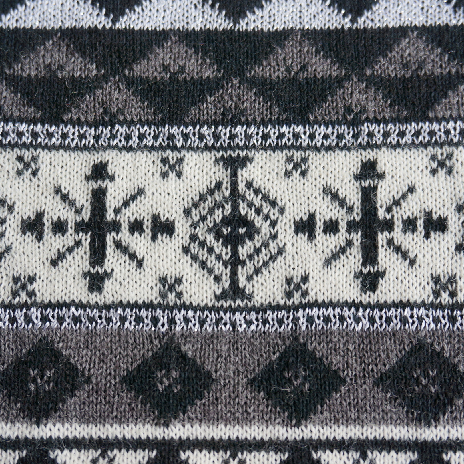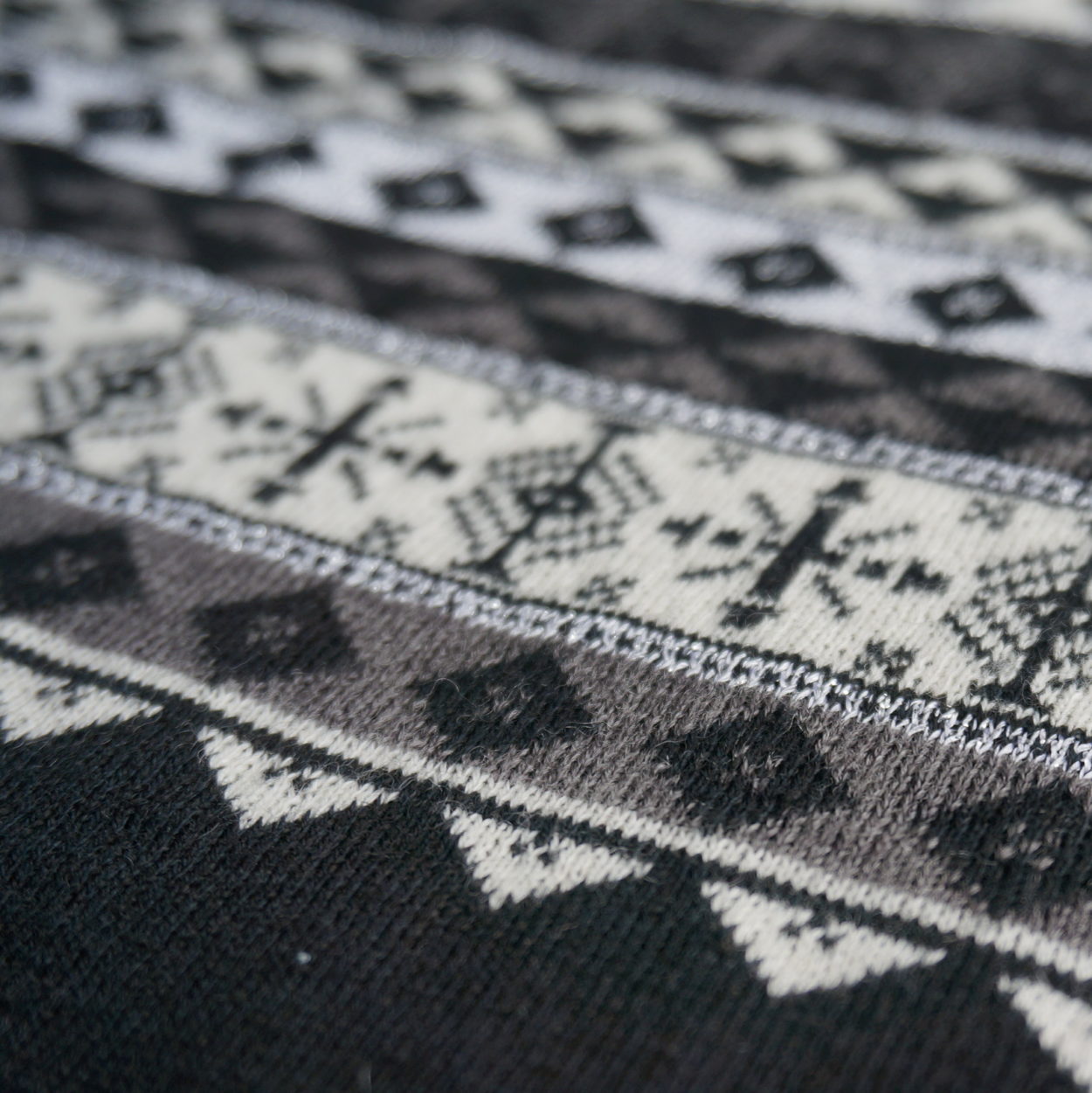 2色袋ジャガード幾何柄毛混とソフトラメ部分柄でスッキリとしています