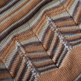 光沢糸を要所要所ラインで入れることで さりげない光り方を出す編地です