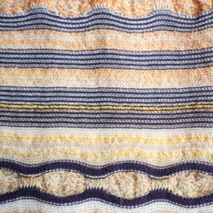 ウール強撚SZを2コース切り替えし強撚の特性で見え方がボーダーでは無い様な編地になりました