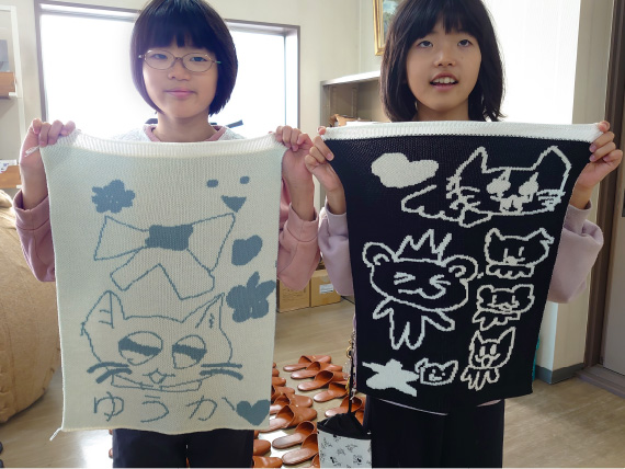 実際に編み地となってできあがったものは、そのままプレゼント。