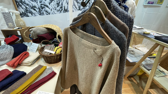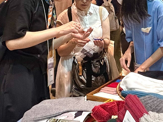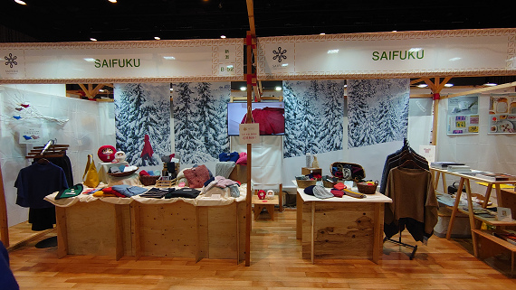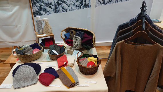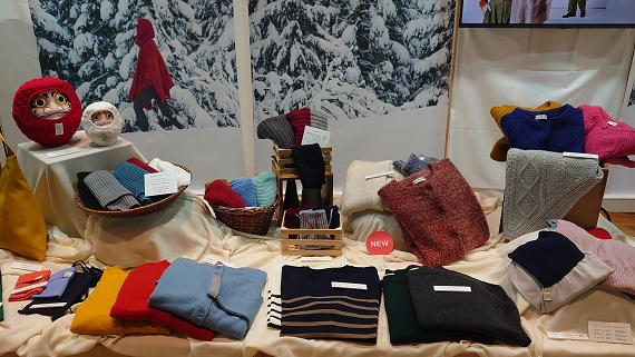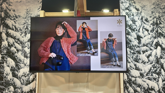 今回は初の試みとして背面にディスプレイを設置し、秋冬の新作の着用イメージや雪国・新潟の情緒ある風景を動画で視覚的にお伝えいたしました。ブースはお店のような雰囲気に仕上げ、秋冬の新作を中心に人気アイテムを多数展示。ご来場の皆さまと近い距離でアイテムやブランドについて、ゆったりとお話しすることができました。