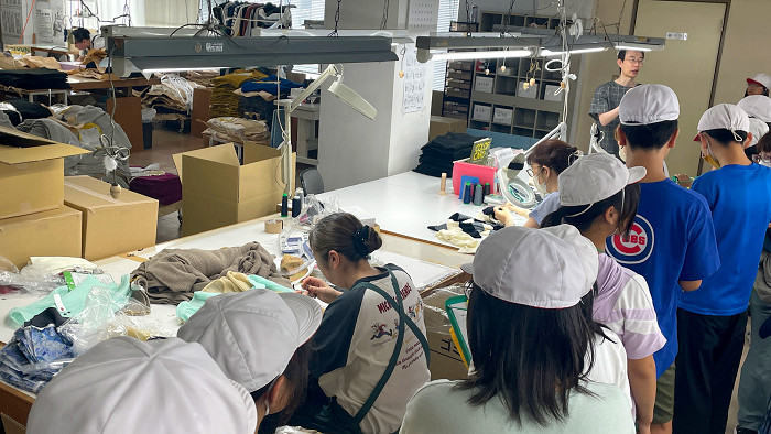 編み地を洗い、裁断・縫製し、検品から出荷までの工程も順に見学。
