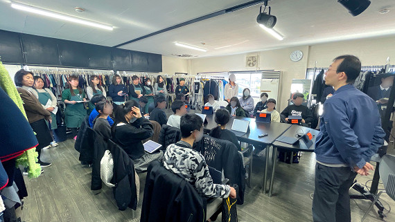 見学のスタートは、私たち「サイフク」の取り組みをはじめ、「ニット」とはどのようなものなのかをご紹介。