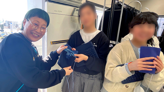 子どもたちから感謝の気持ちとして、ブックカバーやスマホケース、ウェルカムボードなど、1つひとつ丁寧に仕上げられた作品をいただきました。